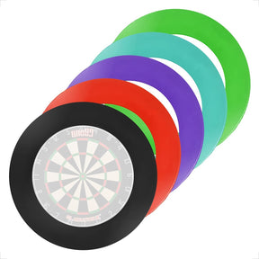 Das flexible Surround wird über das Dartboard gezogen und fixiert sich dadurch selbst. Dadurch findet der Ring auf nahezu jedem Board Halt und gehört zum Standardequipment für jeden Dartspieler.