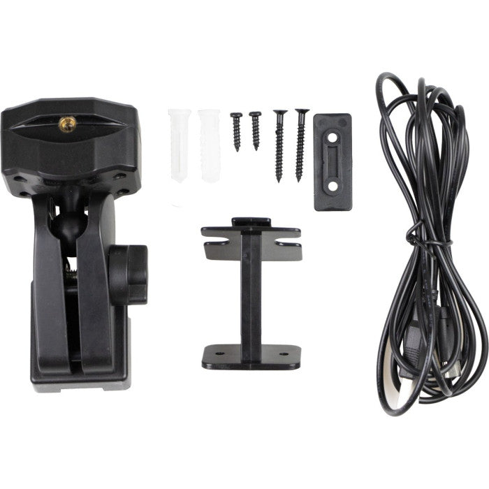 Mitgeliefert: Der Bull's Laser Oche wird mit Schrauben, Ladegerät und einer Wandhalterung geliefert.